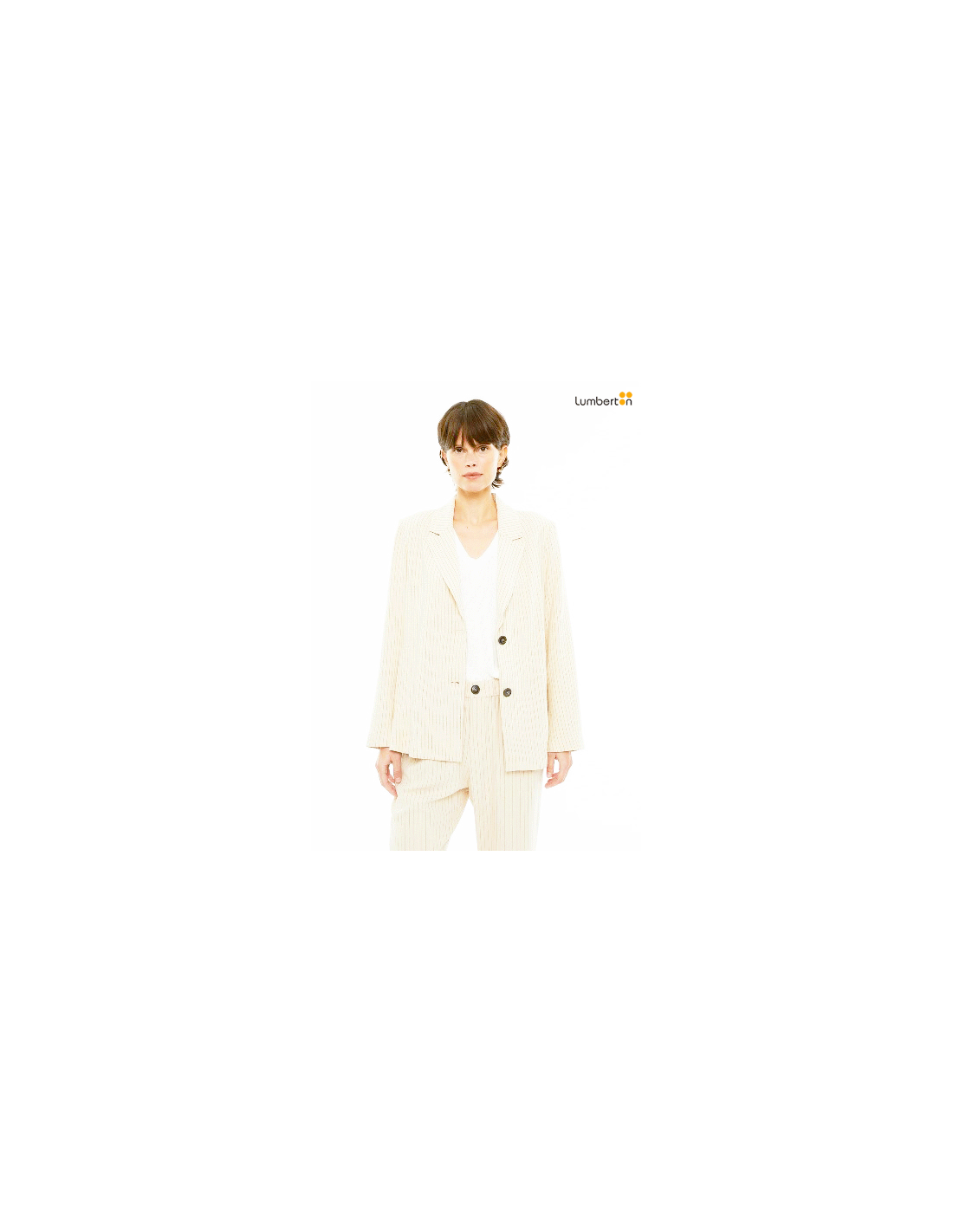 Te encantará esta americana recta de mujer con elegante raya diplomática y cuello solapa. Su diseño con hombreras y cierre cruzado aporta un toque sofisticado. Incluye bolsillos de vivo y aberturas laterales para mayor comodidad. Ideal para un look profesional y moderno.