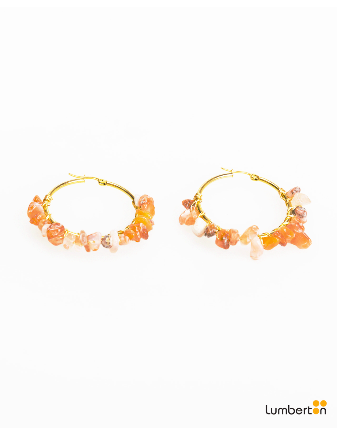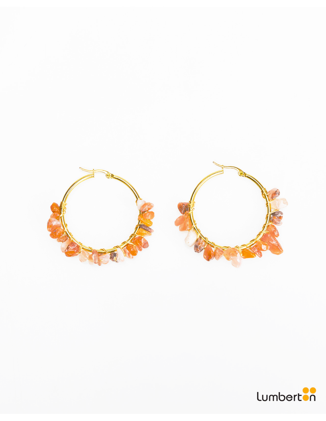 Pendientes aro grandes color oro con piedras naranjaBI714
