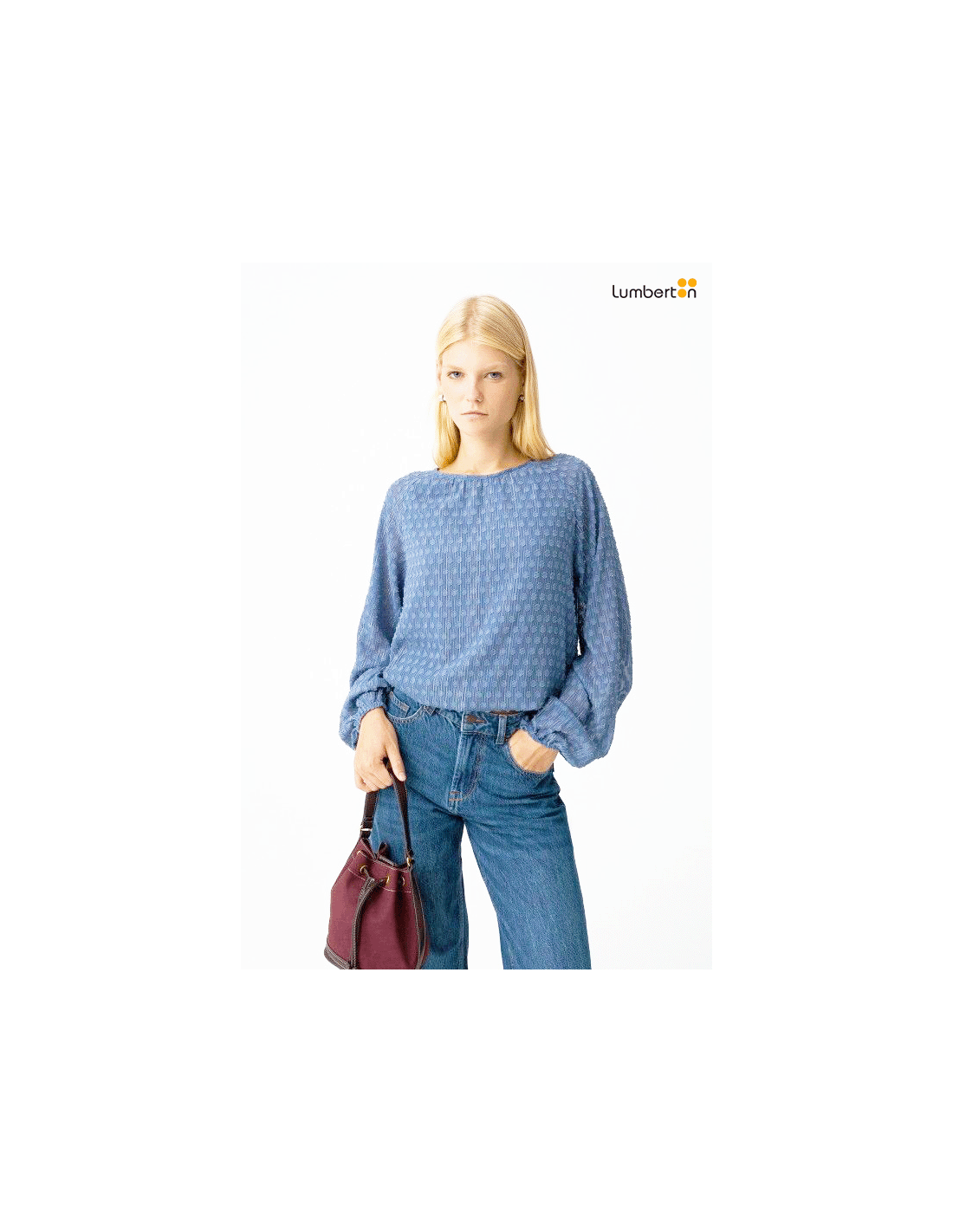 Blusa de gasa azul con lunares e hilo doradoSANTACLA