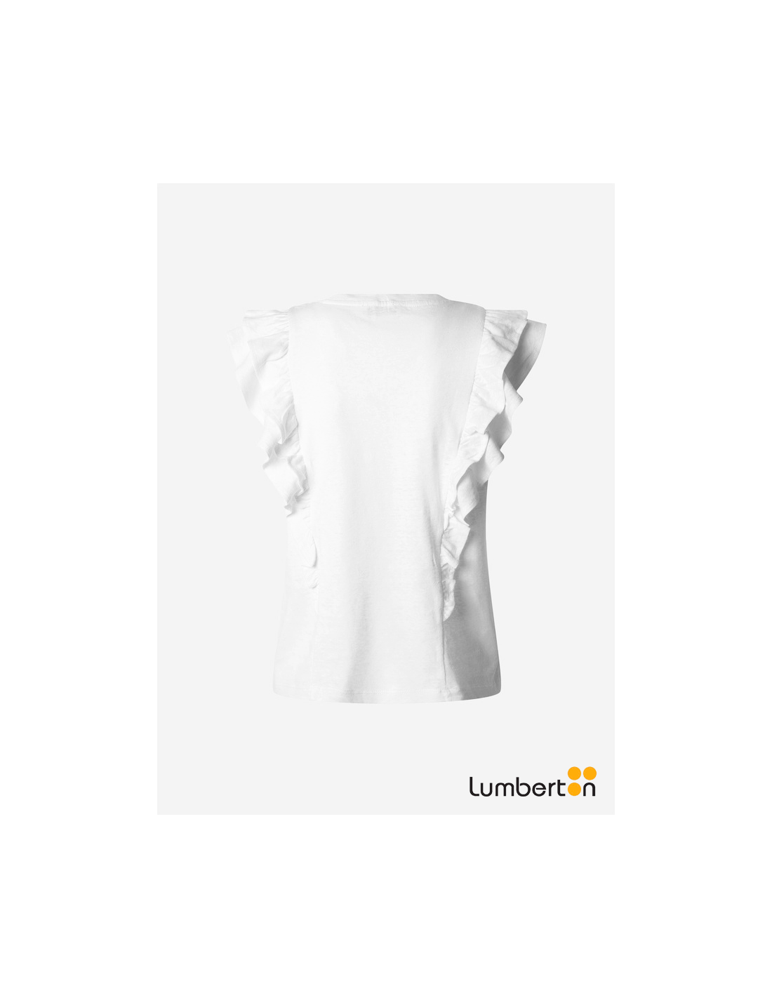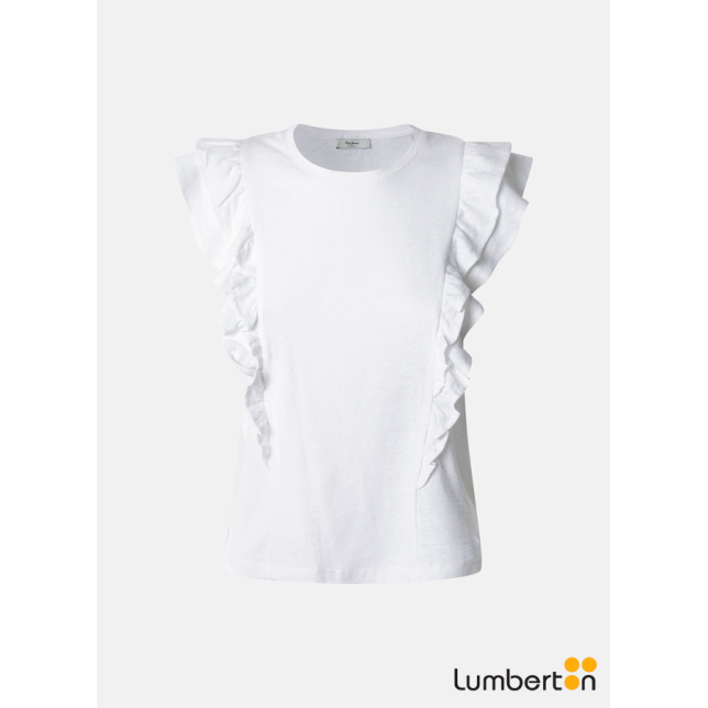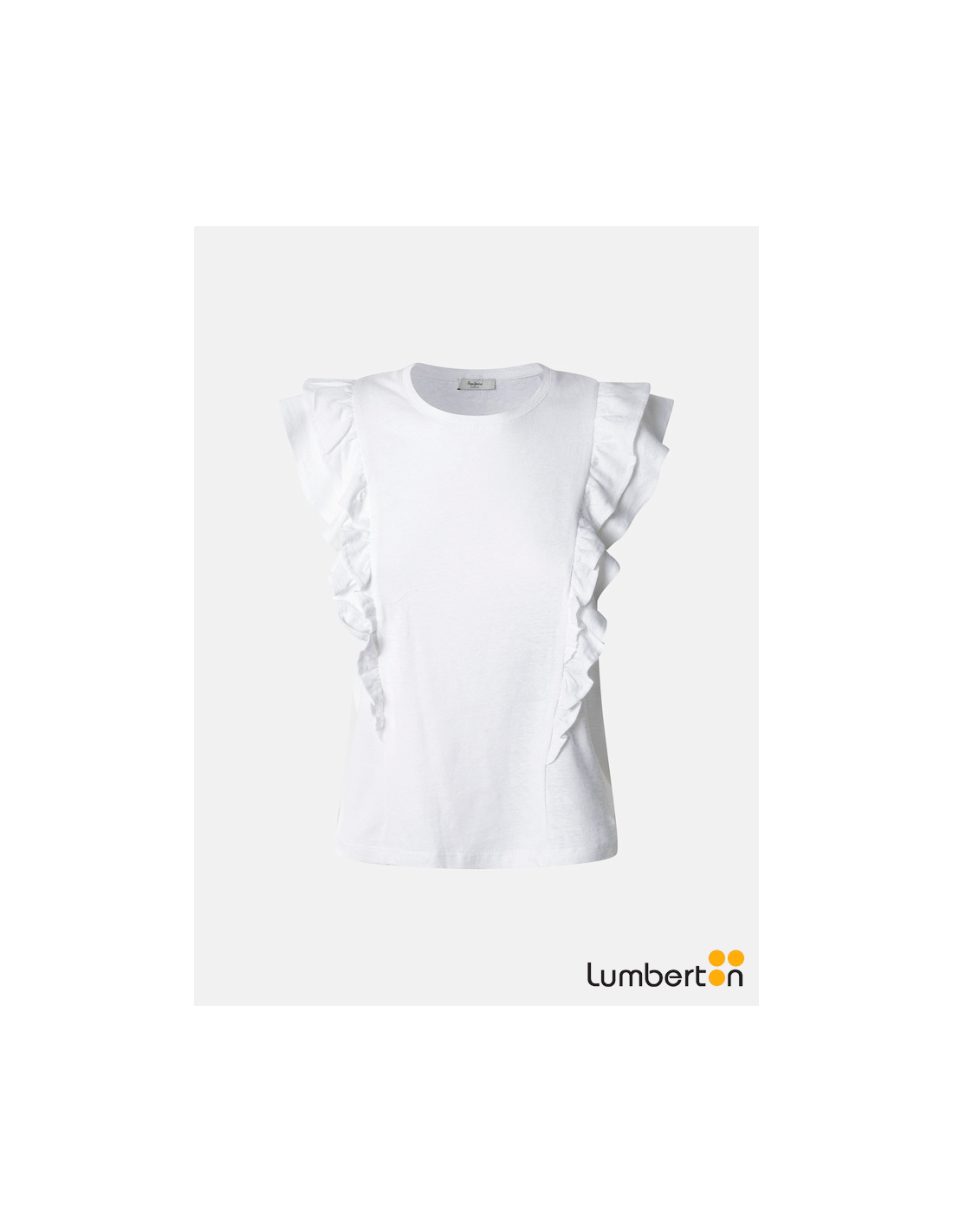 Te encantará esta camiseta blanca con volantes, delicada y femenina, ideal para elevar cualquier look básico. Su diseño suave y con movimiento le da un toque especial sin perder comodidad. Perfecta para un estilo casual con un aire romántico. ¡Un detalle sutil que marca la diferencia!