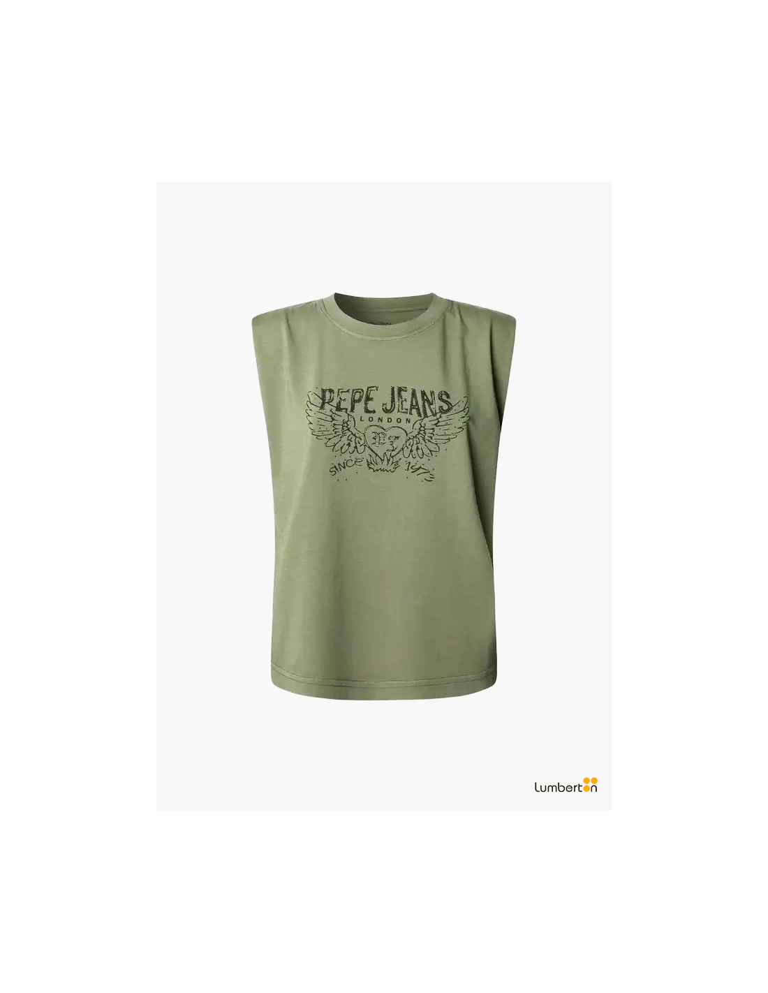 Camiseta cuello redondo verde militar con dibujo "corazon de alas"BERTHAV