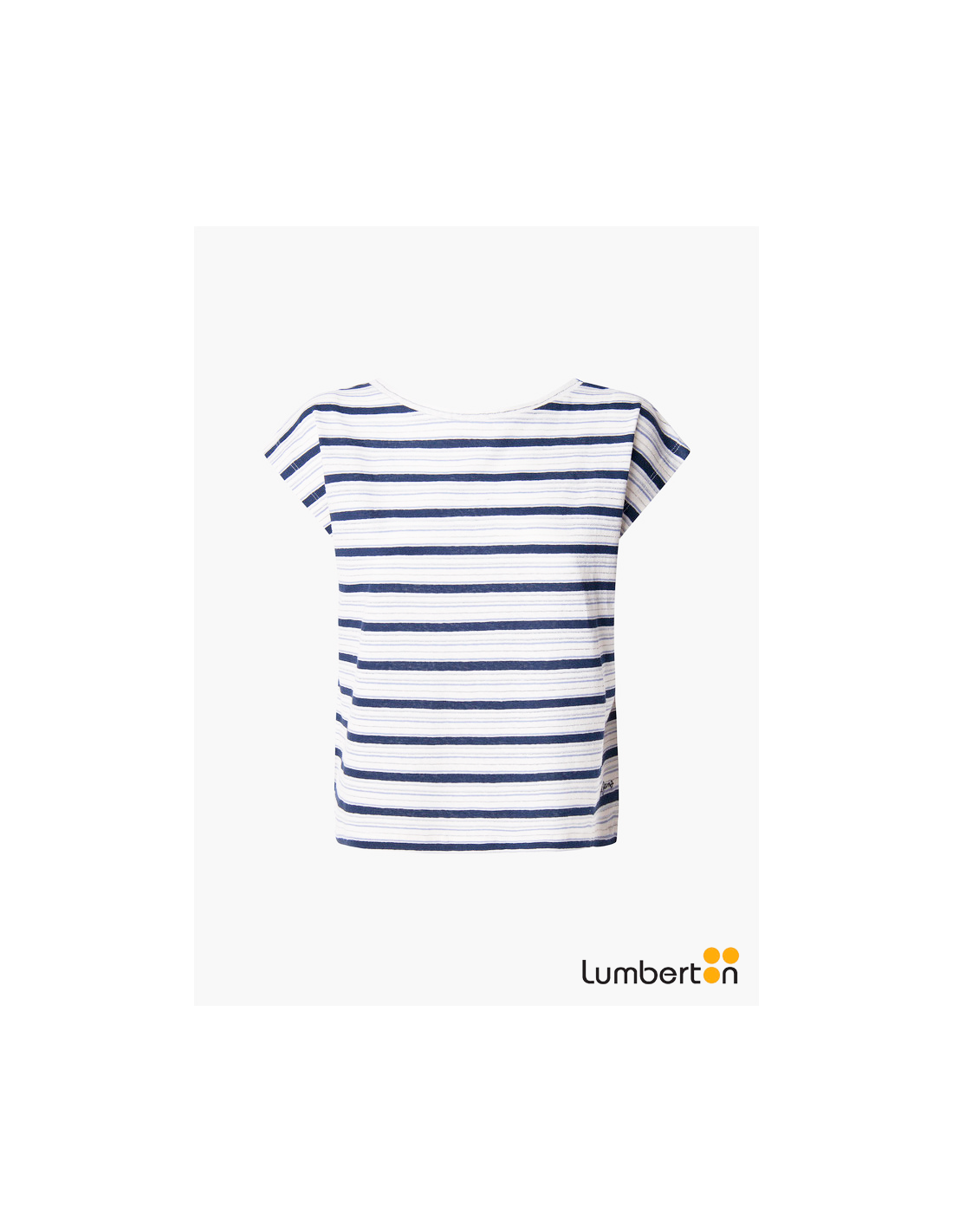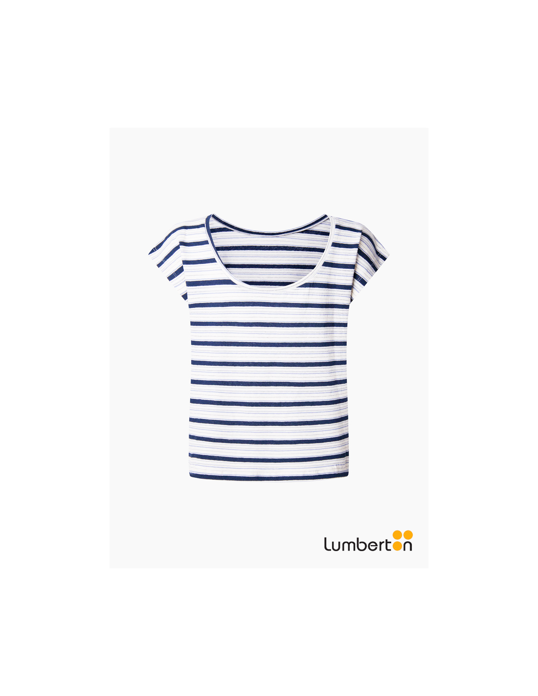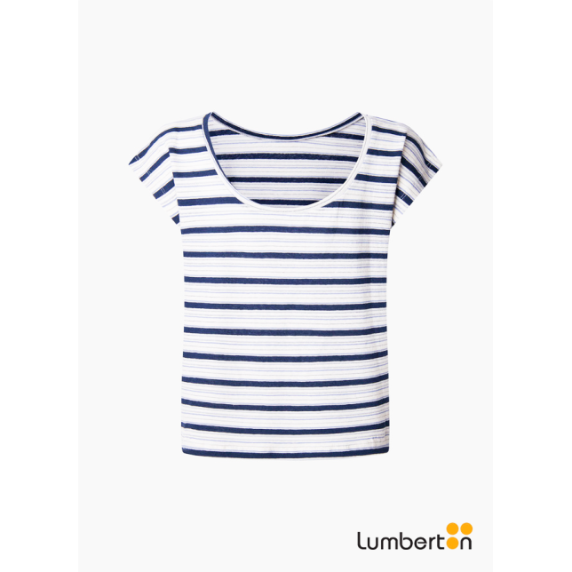 Te enamorará esta camiseta de rayas azules y plata brillante, perfecta para añadir un toque de luz y frescura a tu look. Su diseño moderno y chic la hace ideal tanto para el día como para la noche. ¡Un básico con personalidad que no pasa desapercibido!