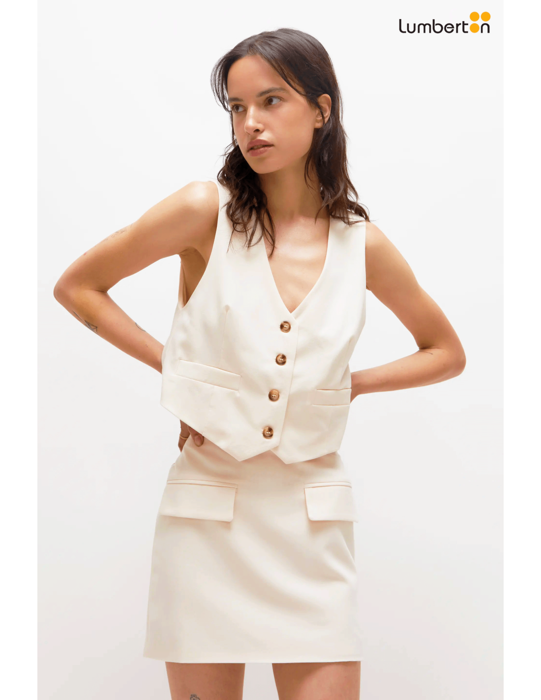 Te encantará este chaleco corto de traje blanco, una prenda versátil y sofisticada que eleva cualquier look. Con corte entallado y acabado impecable, es perfecto para combinar con pantalones a juego o llevarlo solo para un estilo moderno y atrevido.