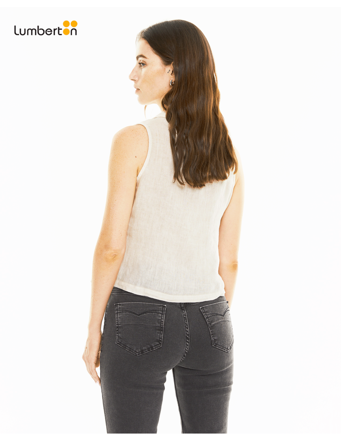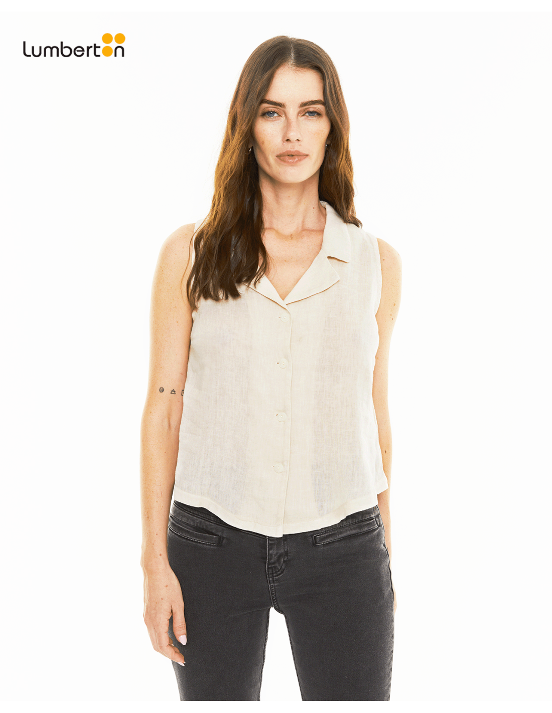 Chaleco Lino Cuello Solapa BeigeCH420 Systemaction