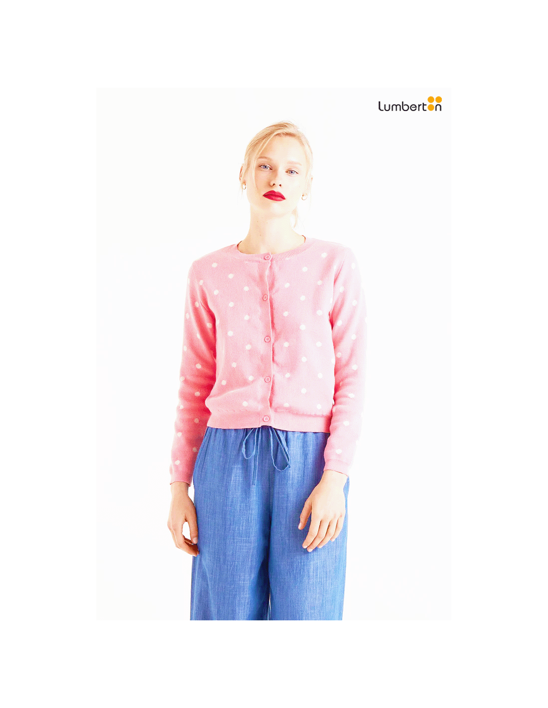 Cárdigan de lunares rosa10214