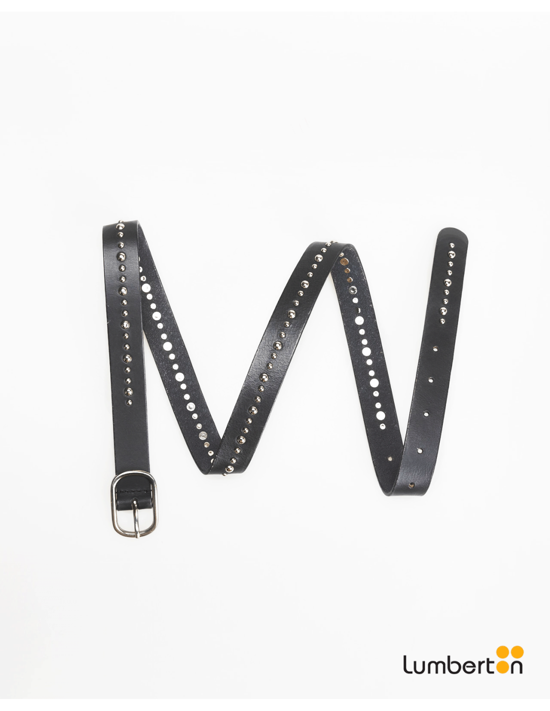 Cinturón de piel con tachas y hebilla metálicaCI802