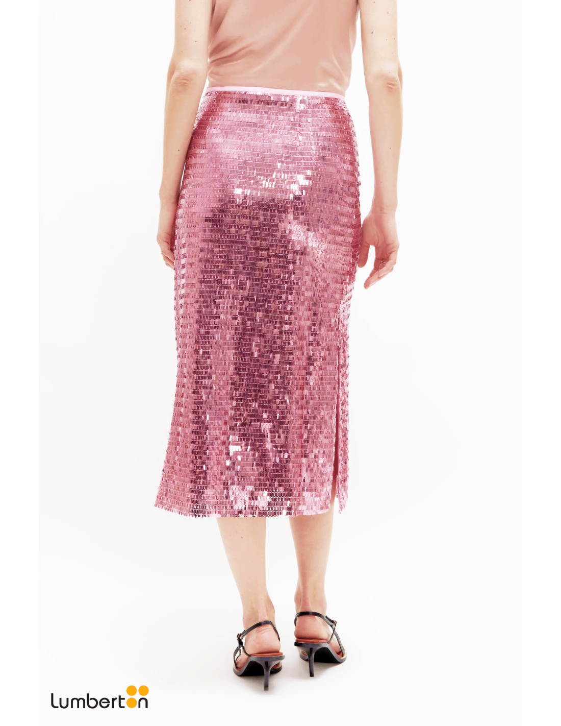 Te encantará esta falda midi de lentejuelas rosa, delicada y deslumbrante a partes iguales. Su tono suave y brillo elegante la convierten en la opción perfecta para looks románticos y festivos. Ideal para destacar con estilo en cualquier ocasión especial.