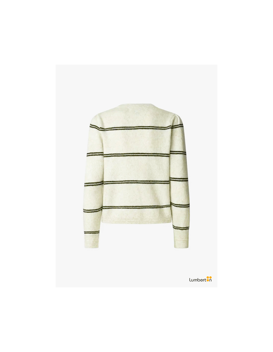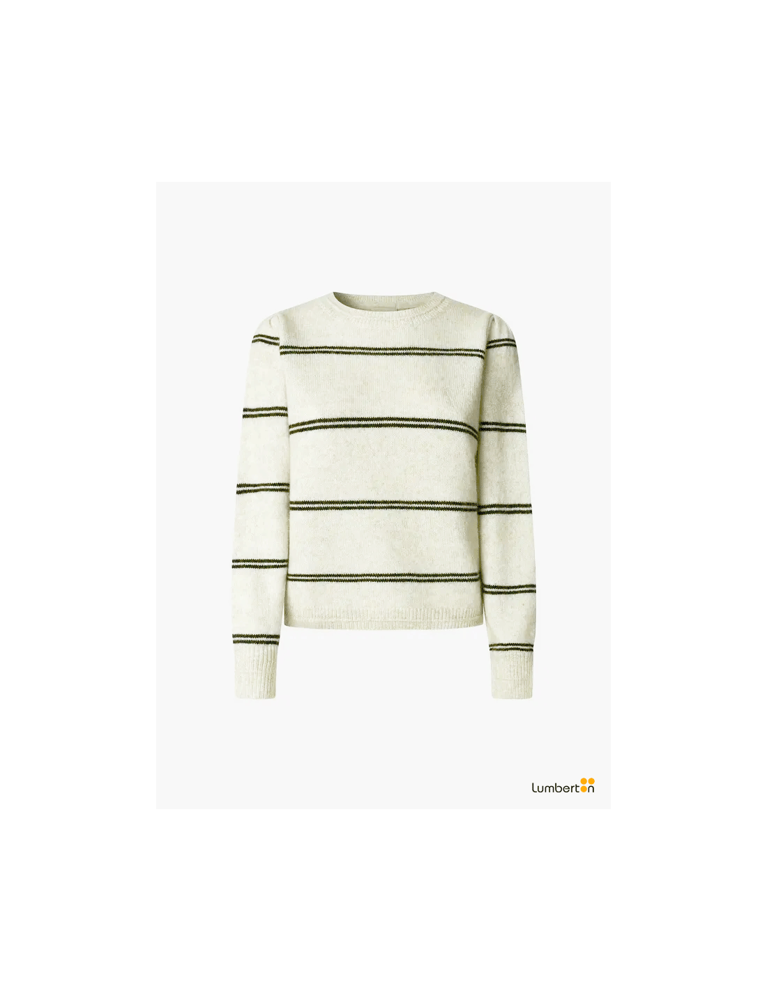 Jersey punto beige rayas negras cuello redondoCARMELA