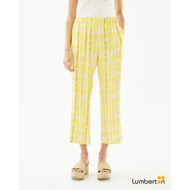 Pantalón cinturilla engomada estampado bambú AmarilloPA315
