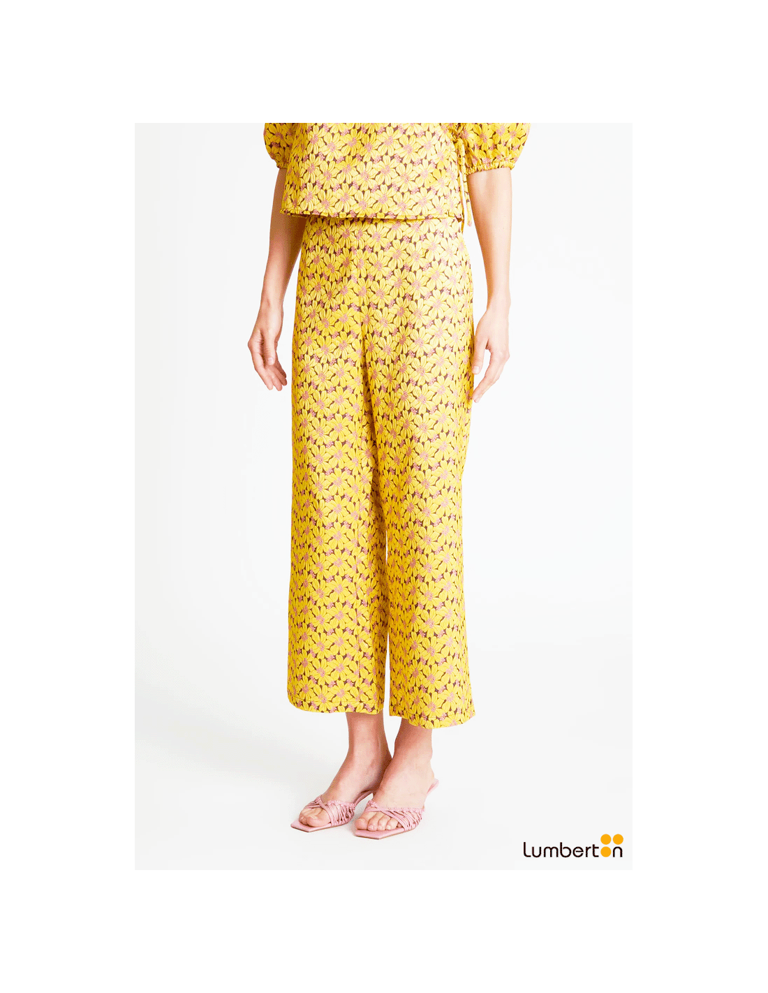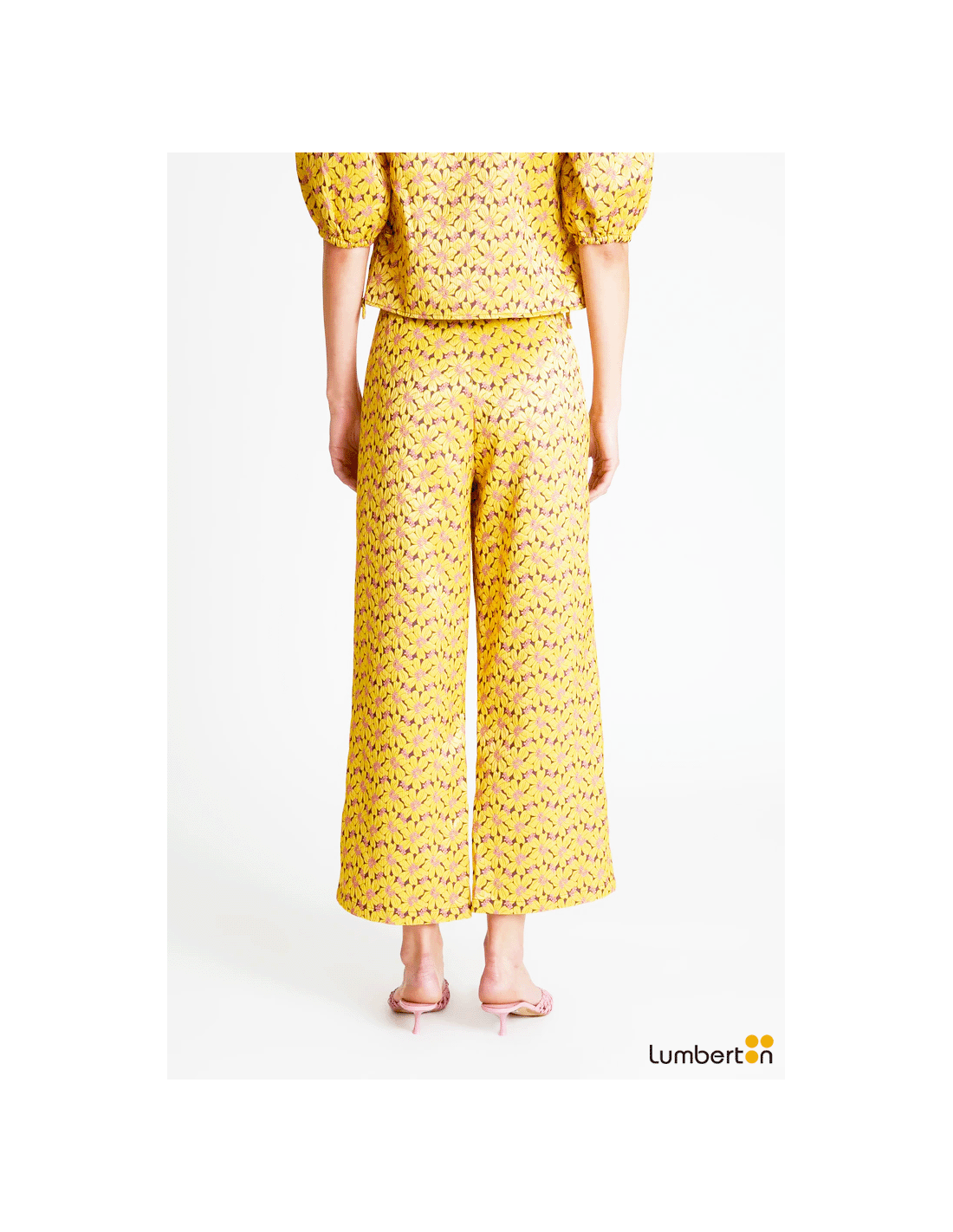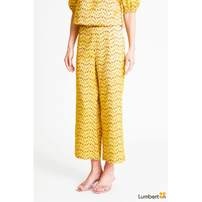 Te encantará este pantalón largo con estampado floral amarillo. Confeccionado en tejido jacquard, destaca por su cintura fija de tiro medio y pernera recta. Incluye prácticos bolsillos laterales que combinan estilo y funcionalidad. Ideal para un look fresco y lleno de personalidad.