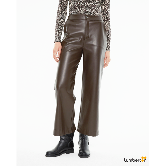 Pantalón recto marrón efecto pielPA925