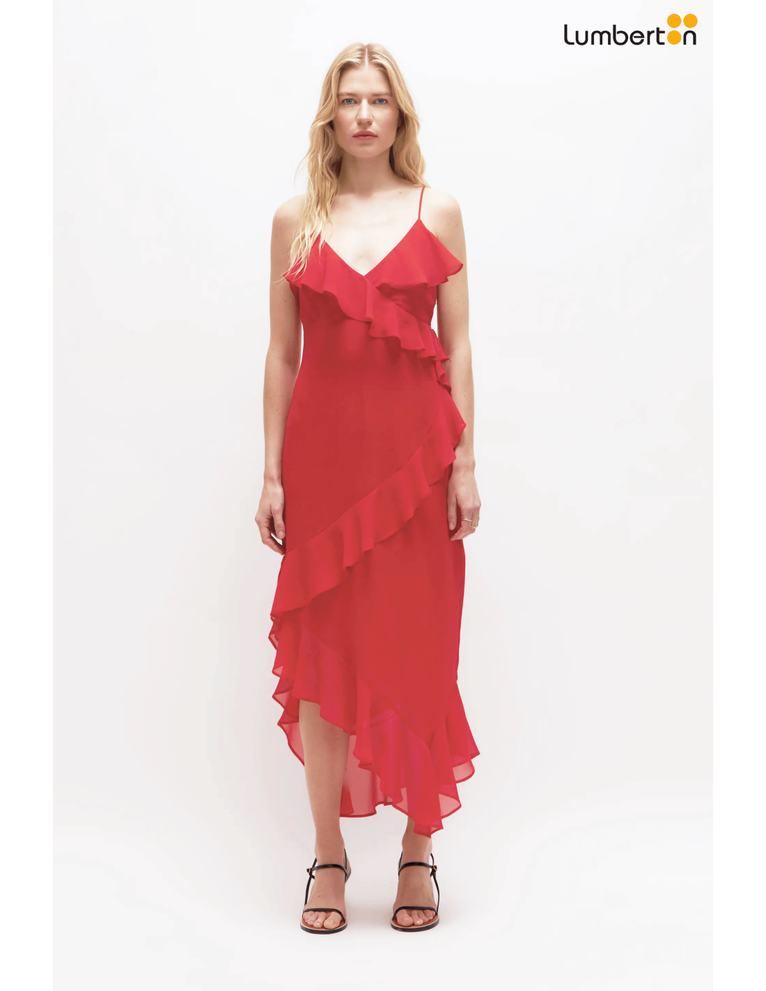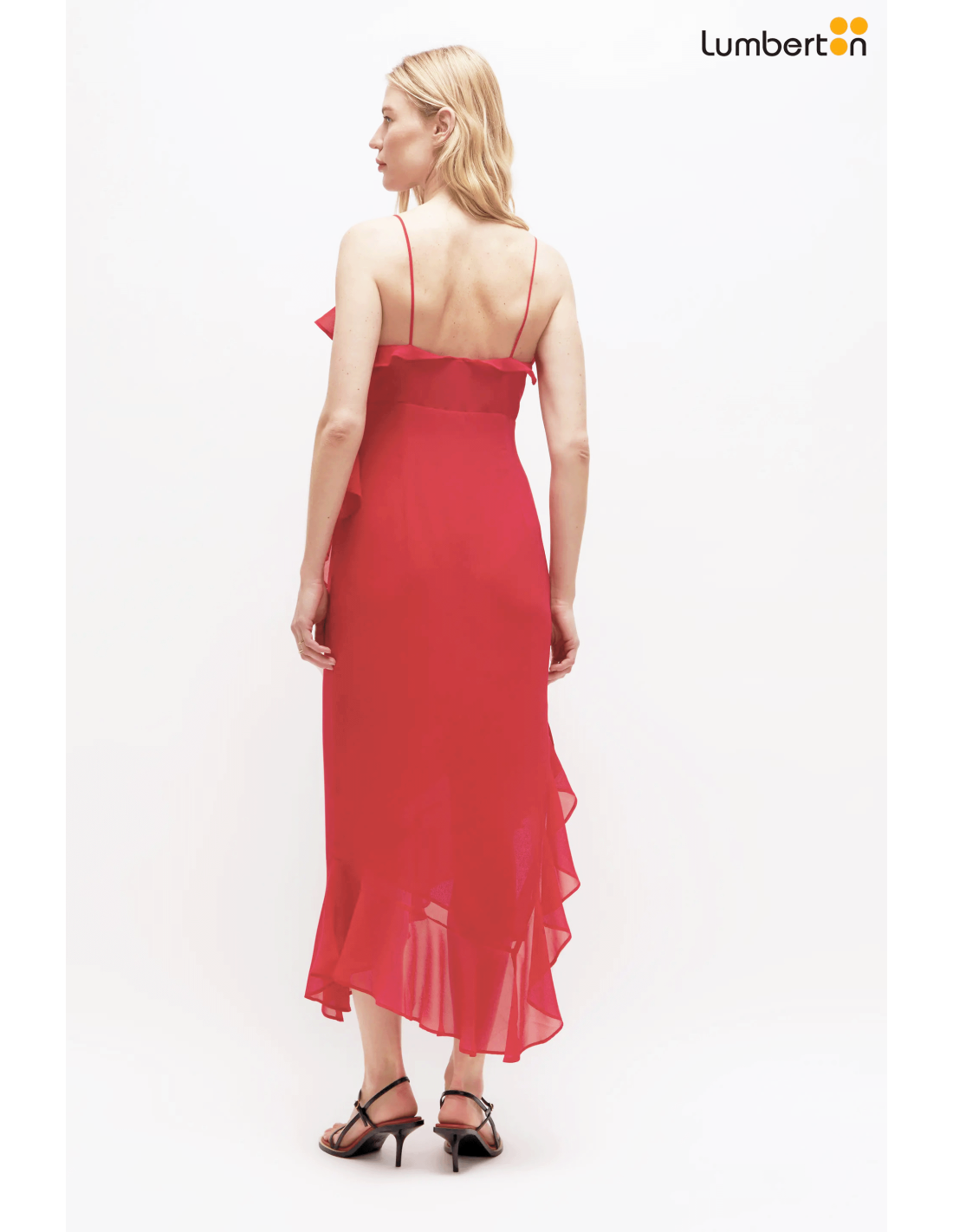 Vestido midi de gasa volantes rojo12201