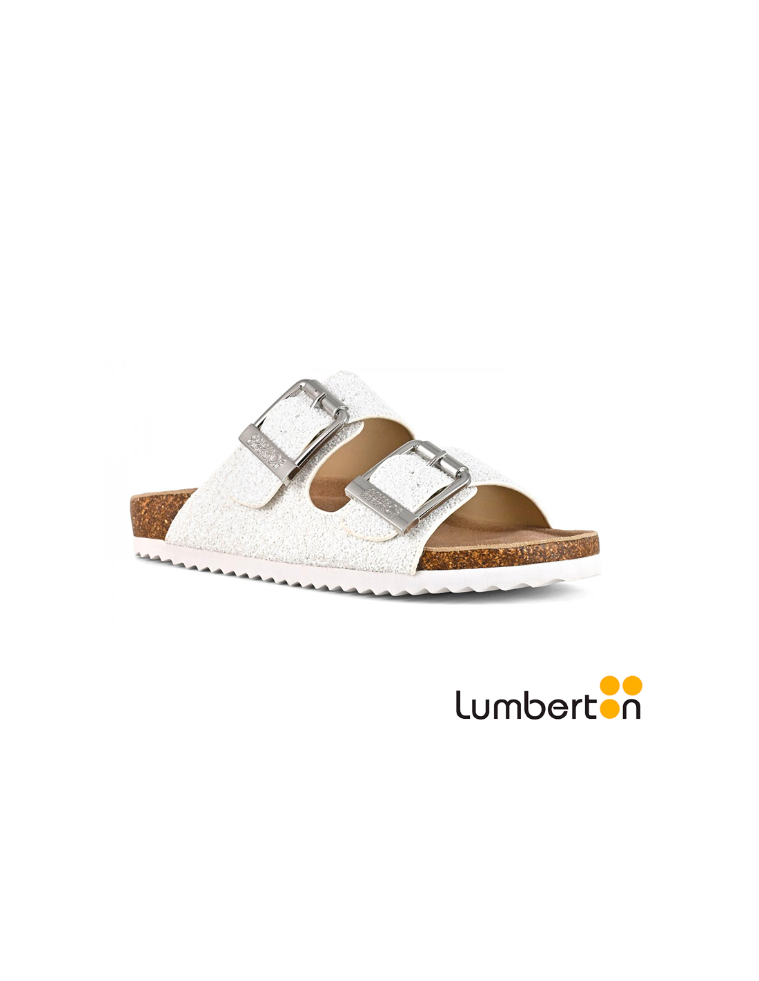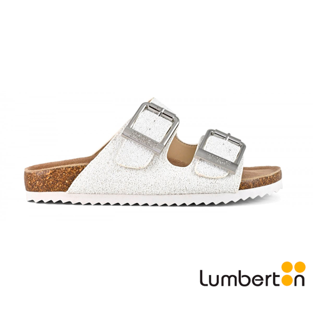 Sandalia blanca con detalle brillante con hebilla BIO35 CALIFORNIA