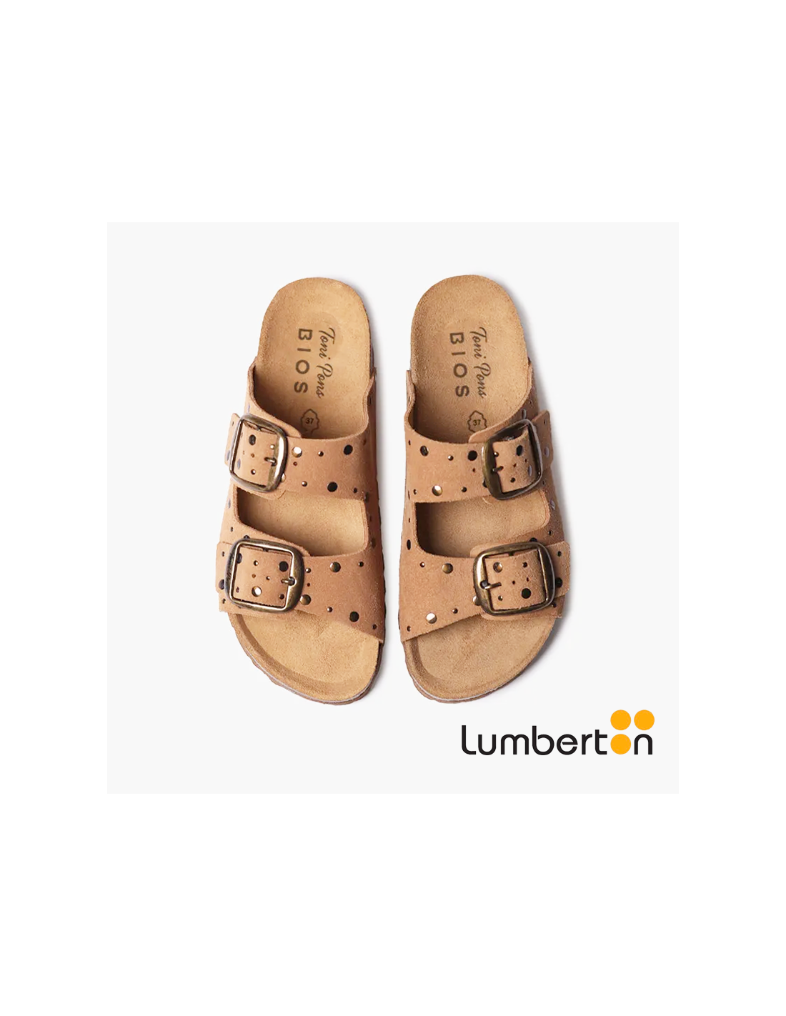 ¡Te encantarán nuestras GRETEL! Esta sandalia de mujer con hebillas tipo BIO está elaborada en serraje con tachuelas. La suela de corcho y goma EVA tiene una altura total de 3 cm. La planta interior está forrada en serraje acolchado para mayor confort. Cuenta con dos tiras superiores con hebillas ajustables para aportar la mayor sujeción. Este modelo calza la talla habitual, si estás entre dos tallas te recomendamos escoger la más grande. De la marca Toni Pons.
