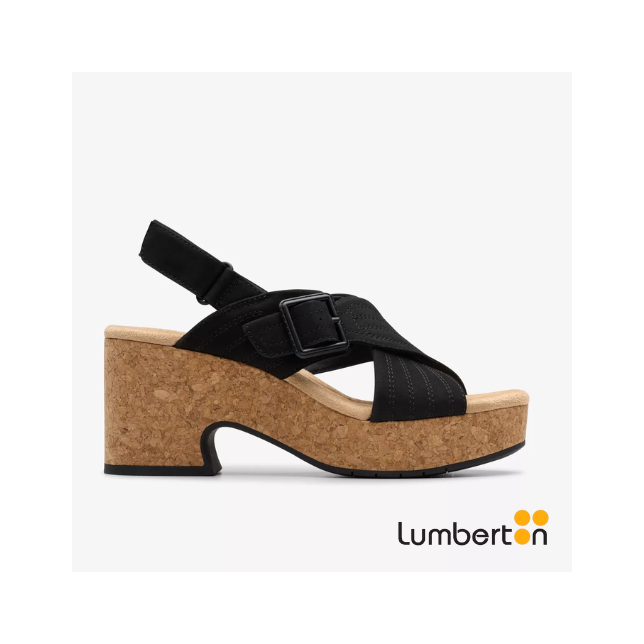 Te enamorará esta sandalia por su diseño elegante y su gran confort. Elaborada en cuero suave, ofrece una sensación premium y una excelente durabilidad. Su plataforma de corcho con tacón ancho brinda altura y estabilidad a cada paso. El detalle de la hebilla y las tiras cruzadas aportan un toque sofisticado. Perfecta para lucir estilizada sin renunciar a la comodidad. De la marca Clarks.